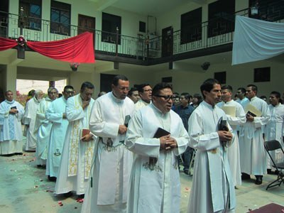 Delante de los fieles, convocados por el bautismo a la comunión en Cristo, hago los cinco votos que confirman solemnemente mi consagración bautismal y eucarística.